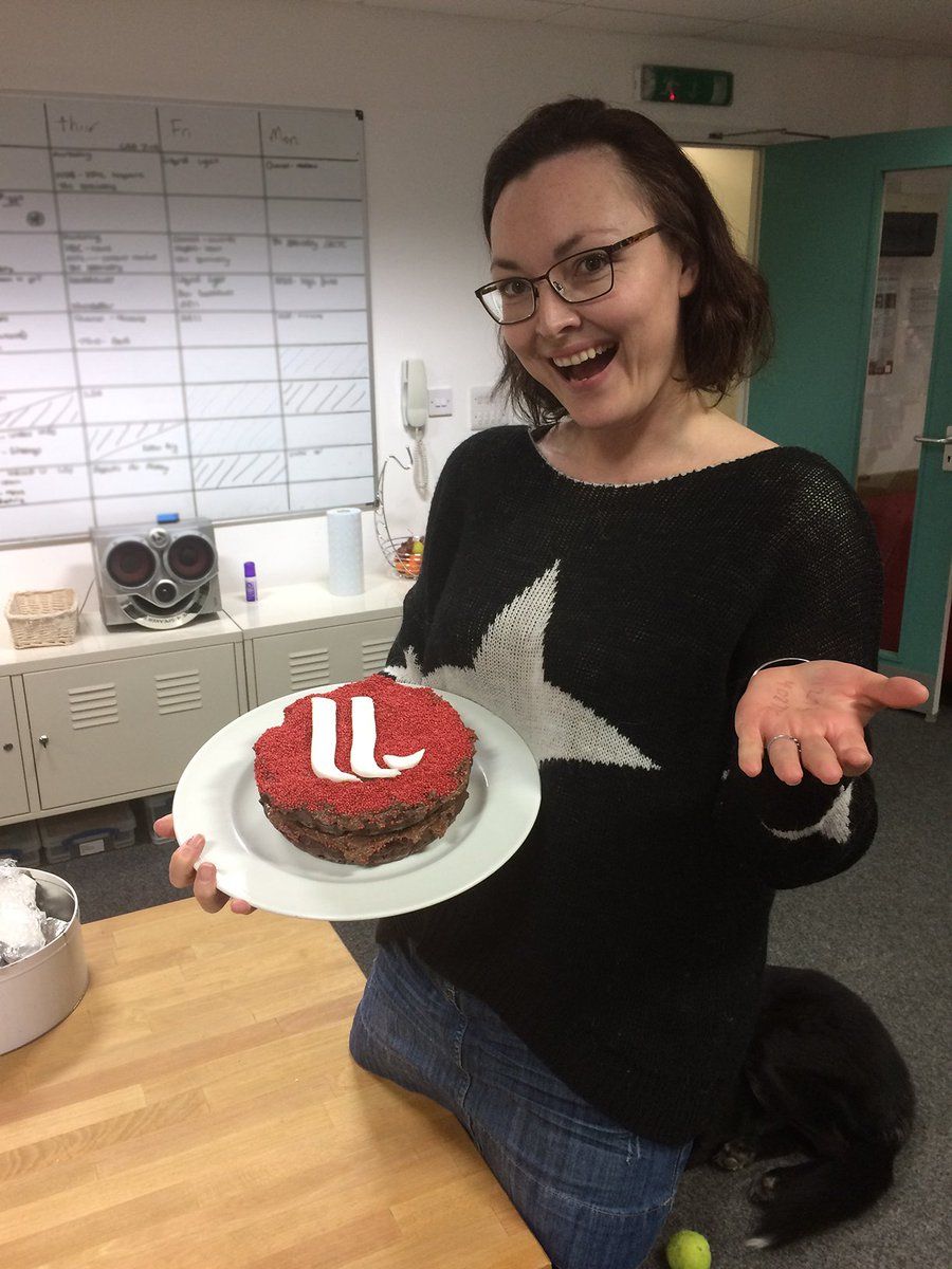 : It's Daisy's last day and she's brought us in an "on-brand" chocolate rum cake! #yum