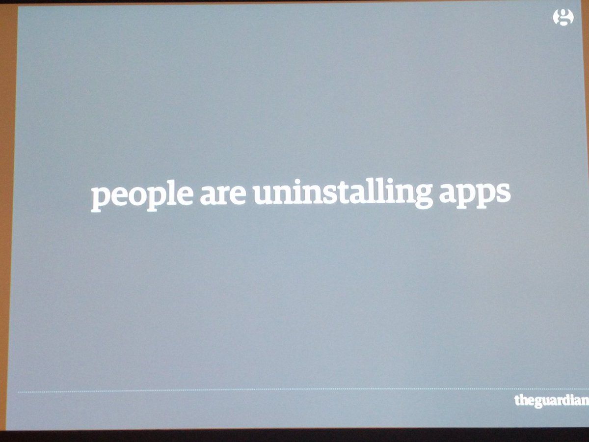 : Some really good nuggets from the guardian at #webprogressions, including "people are uninstalling apps"
