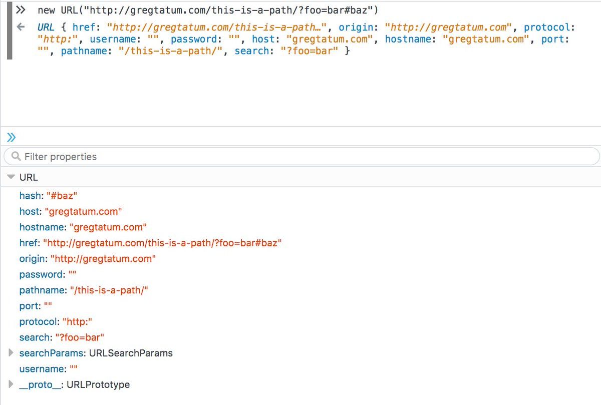 : "new URL()" is really handy. I hadn't seen this one before.